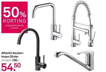 50% KORTING op geselecteerde kranen: Atlantic keukenkraan Olivier chroom 109.- voor 54.50