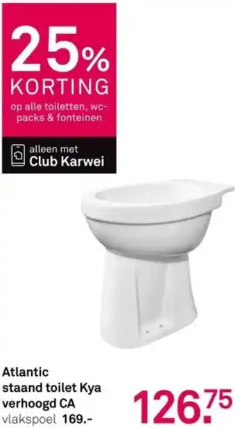 De prijs van de Atlantic staand toilet Kya verhoogd CA kan ook teruggevonden worden hierboven op de pagina, samen met de datum van wanneer de aanbieding beschikbaar is. Ook kun je de prijzen in de huidige Karwei folder of op de Karwei website controleren. De aanbiedingen verzekeren je van het kopen van de Karwei producten voor de laagste prijs.