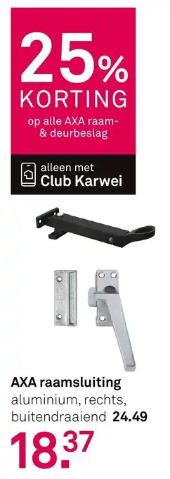 Profiteer nu van 25% KORTING op alle AXA raam- & deurbeslag bij Karwei met Club Karwei. Deze AXA raamsluiting van aluminium is geschikt voor rechts buitendraaiende ramen en is nu verkrijgbaar voor slechts €18.37. Met deze raamsluiting zorg je voor extra veiligheid in huis door ramen eenvoudig af te sluiten. De raamsluiting is van hoge kwaliteit en eenvoudig te monteren. Dankzij de korting van 25% bespaar je flink op de aanschafprijs. Wees er snel bij en profiteer van deze aanbieding met Club Karwei. Upgrade de beveiliging van je ramen met de AXA raamsluiting en geniet van een veilig gevoel in huis.