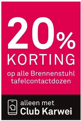 Profiteer nu van een exclusieve aanbieding bij Karwei! Als lid van Club Karwei ontvang je maar liefst 20% korting op alle Brennenstuhl tafelcontactdozen. Deze handige contactdozen zijn ideaal voor het aansluiten van meerdere elektrische apparaten op één plek. Met de hoge kwaliteit en veiligheid van Brennenstuhl weet je zeker dat je goed zit. Of je nu extra stopcontacten nodig hebt in je kantoor, keuken of woonkamer, met Brennenstuhl tafelcontactdozen heb je altijd genoeg aansluitingen. Mis deze kans niet en profiteer van de korting door je aan te melden bij Club Karwei. Zo bespaar je niet alleen geld, maar ben je ook verzekerd van hoogwaardige elektrische accessoires voor in huis.