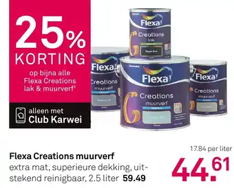 De prijs van de Flexa Creations muurverf kan ook teruggevonden worden hierboven op de pagina, samen met de datum van wanneer de aanbieding beschikbaar is. Ook kun je de prijzen in de huidige Karwei folder of op de Karwei website controleren. De aanbiedingen verzekeren je van het kopen van de Karwei producten voor de laagste prijs.