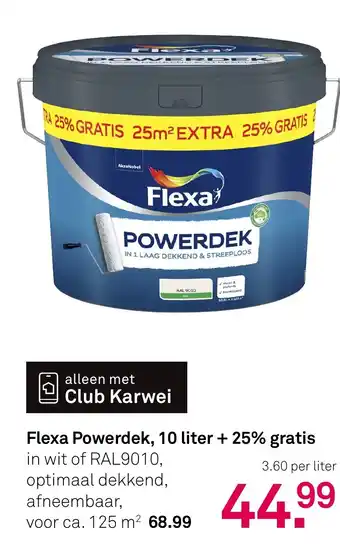 Flexa Powerdek, 10 liter + 25% gratis aanbieding bij Karwei