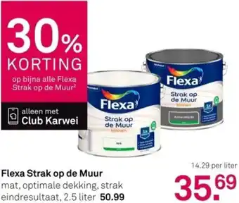 De prijs van de Flexa Strak op de Muur kan ook teruggevonden worden hierboven op de pagina, samen met de datum van wanneer de aanbieding beschikbaar is. Ook kun je de prijzen in de huidige Karwei folder of op de Karwei website controleren. De aanbiedingen verzekeren je van het kopen van de Karwei producten voor de laagste prijs.