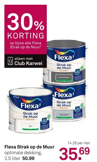 30% KORTING op bijna alle Flexa Strak op de Muur verf binnen Club Karwei