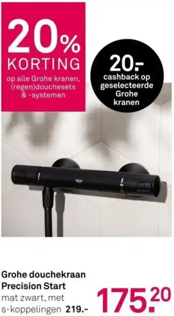 20% KORTING op Grohe douchekraan Precision Start mat zwart