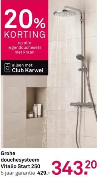 20% KORTING op Grohe douchesysteem Vitalio Start 250 met Club Karwei