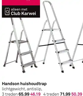 Karwei biedt naast de Handson huishoudtrap een ruime collectie producten aan. Houd de wekelijkse Karwei folder in de gaten om de beste aanbiedingen en acties te vinden. Naast Handson huishoudtrap, kunt u ook de volgende aanbiedingen vinden: Handson huishoudtrap, Handson huishoudtrappen & Handson huishoudtrappen.
