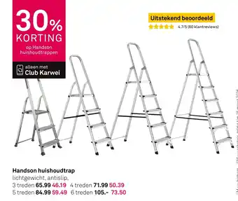 Karwei biedt naast de Handson huishoudtrap een ruime collectie producten aan. Houd de wekelijkse Karwei folder in de gaten om de beste aanbiedingen en acties te vinden. Naast Handson huishoudtrap, kunt u ook de volgende aanbiedingen vinden: Handson huishoudtrap, Handson huishoudtrappen & Handson huishoudtrappen.