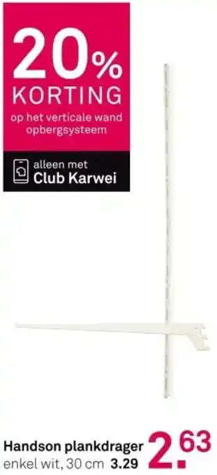 De prijs van de Handson plankdrager kan ook teruggevonden worden hierboven op de pagina, samen met de datum van wanneer de aanbieding beschikbaar is. Ook kun je de prijzen in de huidige Karwei folder of op de Karwei website controleren. De aanbiedingen verzekeren je van het kopen van de Karwei producten voor de laagste prijs.