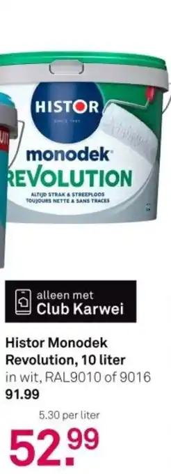 Karwei biedt naast de Histor Monodek Revolution een ruime collectie producten aan. Houd de wekelijkse Karwei folder in de gaten om de beste aanbiedingen en acties te vinden. Naast Histor Monodek Revolution, kunt u ook de volgende aanbiedingen vinden: Histor Monodek Revolution, Histor monodek revolution & Histor Monodek Revolution muurverf wit 10 liter.