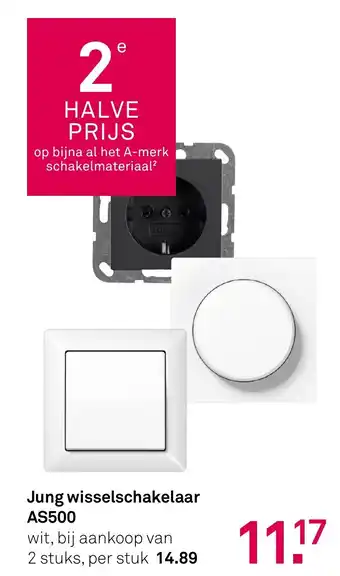 De Jung wisselschakelaar AS500 is momenteel met korting verkrijgbaar bij Karwei. Hier vind je alle details over prijs, geldigheidsduur en actievoorwaarden. Vergeet niet om ook andere aanbiedingen en deals voor Jung wisselschakelaar AS500 te bekijken zodat je zeker weet dat je de beste prijs betaalt. De kortingsactie loopt van 23-02-2026 tot 01-03-2026. Is de actie inmiddels verlopen? Geen zorgen, vergelijk dan soortgelijke aanbiedingen of volg de productcategorie voor toekomstige prijsverlagingen. Zo koop je altijd met voordeel.Veelgestelde vragen over Jung wisselschakelaar AS500