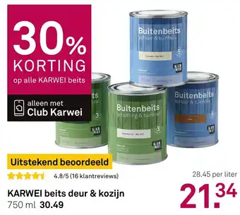 De prijs van de KARWEI beits deur & kozijn kan ook teruggevonden worden hierboven op de pagina, samen met de datum van wanneer de aanbieding beschikbaar is. Ook kun je de prijzen in de huidige Karwei folder of op de Karwei website controleren. De aanbiedingen verzekeren je van het kopen van de Karwei producten voor de laagste prijs.