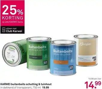 De prijs van de KARWEI buitenbeits schutting & tuinhout kan ook teruggevonden worden hierboven op de pagina, samen met de datum van wanneer de aanbieding beschikbaar is. Ook kun je de prijzen in de huidige Karwei folder of op de Karwei website controleren. De aanbiedingen verzekeren je van het kopen van de Karwei producten voor de laagste prijs.
