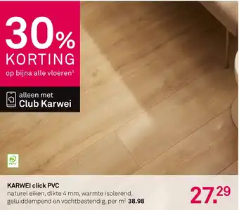 Karwei biedt naast de KARWEI click PVC een ruime collectie producten aan. Houd de wekelijkse Karwei folder in de gaten om de beste aanbiedingen en acties te vinden. Naast KARWEI click PVC, kunt u ook de volgende aanbiedingen vinden: KARWEI click PVC, Click PVC Basic & Click PVC Basic.