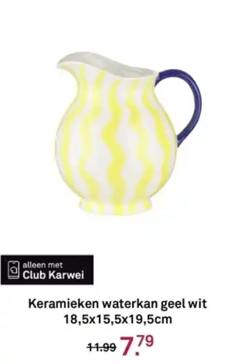 De prijs van de Keramieken waterkan geel wit kan ook teruggevonden worden hierboven op de pagina, samen met de datum van wanneer de aanbieding beschikbaar is. Ook kun je de prijzen in de huidige Karwei folder of op de Karwei website controleren. De aanbiedingen verzekeren je van het kopen van de Karwei producten voor de laagste prijs.
