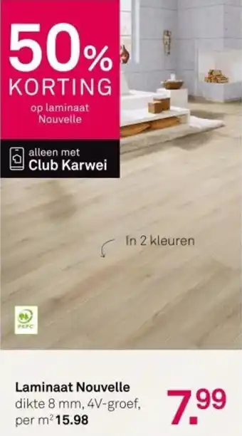 De prijs van de Laminaat Nouvelle kan ook teruggevonden worden hierboven op de pagina, samen met de datum van wanneer de aanbieding beschikbaar is. Ook kun je de prijzen in de huidige Karwei folder of op de Karwei website controleren. De aanbiedingen verzekeren je van het kopen van de Karwei producten voor de laagste prijs.