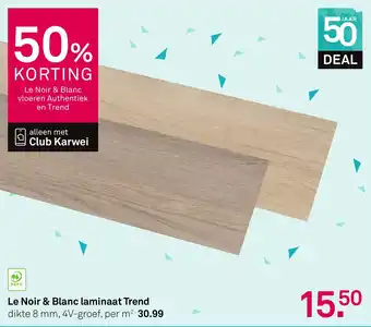 De prijs van de Le Noir & Blanc laminaat Trend kan ook teruggevonden worden hierboven op de pagina, samen met de datum van wanneer de aanbieding beschikbaar is. Ook kun je de prijzen in de huidige Karwei folder of op de Karwei website controleren. De aanbiedingen verzekeren je van het kopen van de Karwei producten voor de laagste prijs.