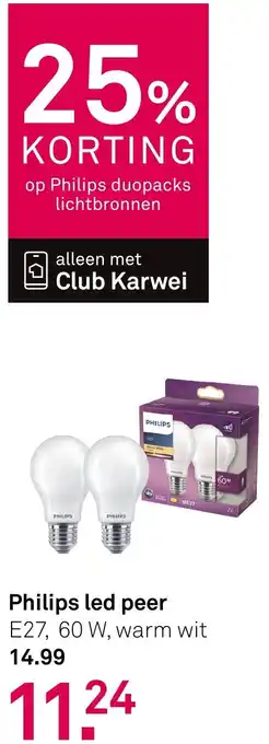 KORTING op Philips led peer E27 60 W warm wit bij Club Karwei