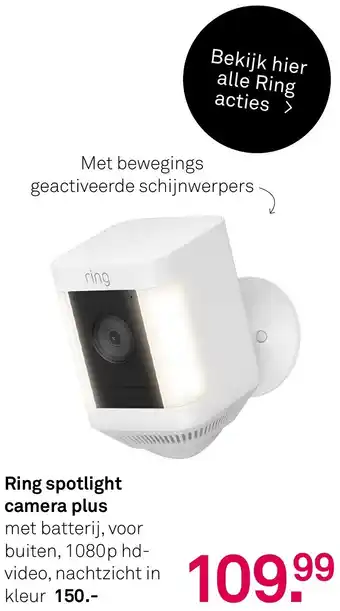 De Ring spotlight camera plus is momenteel met korting verkrijgbaar bij Karwei. Hier vind je alle details over prijs, geldigheidsduur en actievoorwaarden. Vergeet niet om ook andere aanbiedingen en deals voor Ring spotlight camera plus te bekijken zodat je zeker weet dat je de beste prijs betaalt. De kortingsactie loopt van 09-02-2026 tot 15-02-2026. Is de actie inmiddels verlopen? Geen zorgen, vergelijk dan soortgelijke aanbiedingen of volg de productcategorie voor toekomstige prijsverlagingen. Zo koop je altijd met voordeel.Veelgestelde vragen over Ring spotlight camera plus