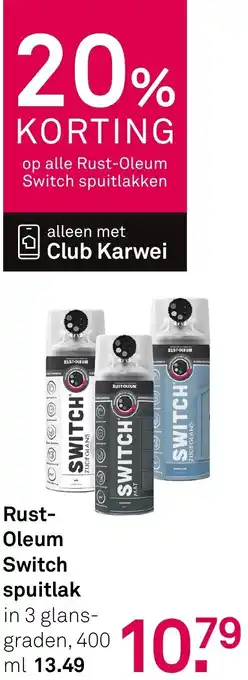 De prijs van de Rust-Oleum Switch spuitlak kan ook teruggevonden worden hierboven op de pagina, samen met de datum van wanneer de aanbieding beschikbaar is. Ook kun je de prijzen in de huidige Karwei folder of op de Karwei website controleren. De aanbiedingen verzekeren je van het kopen van de Karwei producten voor de laagste prijs.