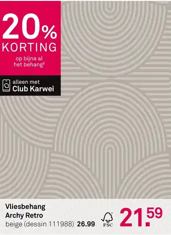 De prijs van de Vliesbehang Archy Retro kan ook teruggevonden worden hierboven op de pagina, samen met de datum van wanneer de aanbieding beschikbaar is. Ook kun je de prijzen in de huidige Karwei folder of op de Karwei website controleren. De aanbiedingen verzekeren je van het kopen van de Karwei producten voor de laagste prijs.