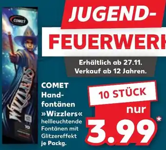 Kaufland DE biedt naast de Comet Handfontänen Wizzlers een ruime collectie producten aan. Houd de wekelijkse Kaufland DE folder in de gaten om de beste aanbiedingen en acties te vinden. Naast Comet Handfontänen Wizzlers, kunt u ook de volgende aanbiedingen vinden: Comet Kugelböller Thunder Pearls, Comet Feuerwerk Batterie Great Honor & Comet Multi-Effekt Batterie Quicksilver.