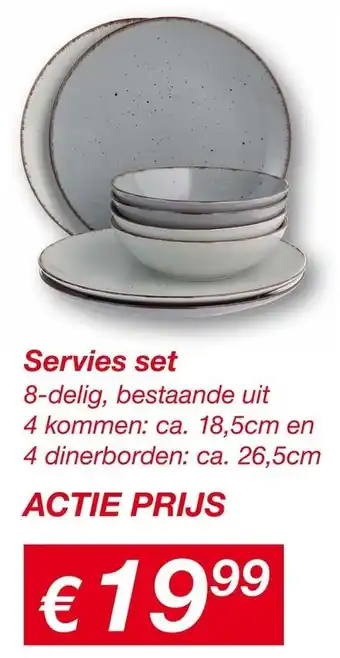 Deze Servies Set is nu in de aanbieding bij Kik. Op deze pagina vind je alle informatie over actuele prijzen, actievoorwaarden en looptijd. Vergelijk ook andere relevante aanbiedingen en acties rondom Servies Set, zodat je altijd de slimste keuze maakt. De aanbieding loopt van 20-04-2026 tot en met 26-04-2026. Is de actie verlopen? Geen probleem – vergelijkbare deals vind je altijd via deze pagina. Volg eventueel de productcategorie om automatisch op de hoogte te blijven van nieuwe aanbiedingen of prijsdalingen voor Servies Set.Veelgestelde vragen over Servies Set