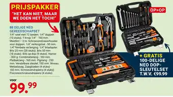 De prijs van de 88 delige neo gereedschapset kan ook teruggevonden worden hierboven op de pagina, samen met de datum van wanneer de aanbieding beschikbaar is. Ook kun je de prijzen in de huidige Kluswijs folder of op de Kluswijs website controleren. De aanbiedingen verzekeren je van het kopen van de Kluswijs producten voor de laagste prijs.