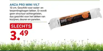 Met de ANZA PRO MINI VILT verfroller van 10 cm breed kun je moeiteloos water- en terpentinegedragen lakken aanbrengen zonder dat er structuur achterblijft. Deze super zachte viltroller is perfect voor het lakken van kozijnen, deuren en panelen, waarbij een glad resultaat gewenst is. Dankzij het mini formaat ligt de roller goed in de hand en kun je nauwkeurig te werk gaan. En dat allemaal voor slechts 3.49 euro! Met de ANZA PRO MINI VILT ben je verzekerd van een professionele afwerking van je schilderwerk. Bestel vandaag nog en ervaar zelf het gemak en de kwaliteit van deze hoogwaardige viltroller.