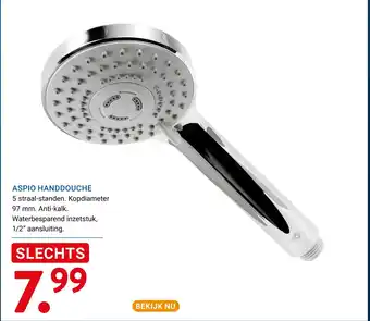 De Aspio handdouche is momenteel met korting verkrijgbaar bij Kluswijs. Hier vind je alle details over prijs, geldigheidsduur en actievoorwaarden. Vergeet niet om ook andere aanbiedingen en deals voor Aspio handdouche te bekijken zodat je zeker weet dat je de beste prijs betaalt. De kortingsactie loopt van 02-03-2026 tot 15-03-2026. Is de actie inmiddels verlopen? Geen zorgen, vergelijk dan soortgelijke aanbiedingen of volg de productcategorie voor toekomstige prijsverlagingen. Zo koop je altijd met voordeel.Veelgestelde vragen over Aspio handdouche