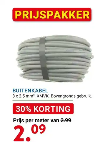 De aanbieding is verkrijgbaar in verschillende winkels, bekijk alle producten om de goedkoopste Buitenkabel te krijgen. Als je graag wilt kijken of het artikel met meer korting te koop is in een andere winkel, bekijk de categorie 'Bouwmarkt'. Wellicht vind je deze aanbiedingen ook interessant: BUITENKABEL, De juiste buitenkabel & aanbieding 3.