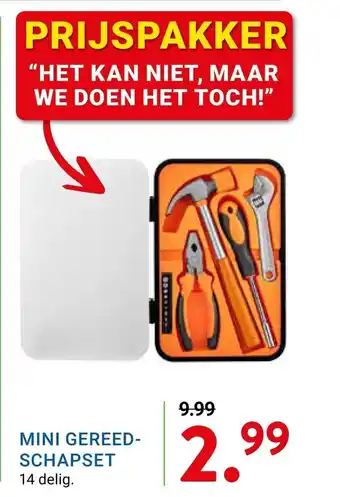 PRIJSPAKKER: Mini gereedschapset 14-delig voor slechts 9.99!