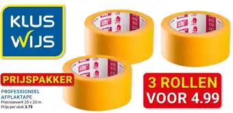 De prijs van de Professioneel afplaktape kan ook teruggevonden worden hierboven op de pagina, samen met de datum van wanneer de aanbieding beschikbaar is. Ook kun je de prijzen in de huidige Kluswijs folder of op de Kluswijs website controleren. De aanbiedingen verzekeren je van het kopen van de Kluswijs producten voor de laagste prijs.