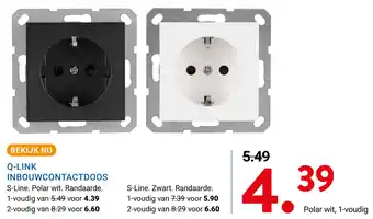 BEKIJK NU: Q-LINK INBOUWCONTACTDOOS S-Line. Polar wit. Randaarde. 1-voudig van 5.49 voor 4.39