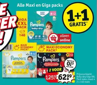 Alle Maxi en Giga packs 2 x 140 stuks 1+1 gratis