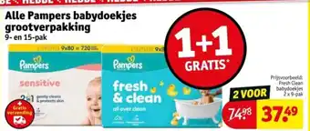 Alle Pampers babydoekjes grootverpakking 1+1 GRATIS