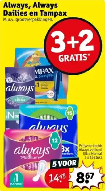 Always, Always Dailies en Tampax korting bij Kruidvat