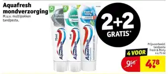 De prijs van de Aquafresh mondverzorging kan ook teruggevonden worden hierboven op de pagina, samen met de datum van wanneer de aanbieding beschikbaar is. Ook kun je de prijzen in de huidige Kruidvat folder of op de Kruidvat website controleren. De aanbiedingen verzekeren je van het kopen van de Kruidvat producten voor de laagste prijs.
