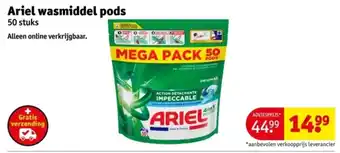 De Ariel wasmiddel pods is momenteel met korting verkrijgbaar bij Kruidvat. Hier vind je alle details over prijs, geldigheidsduur en actievoorwaarden. Vergeet niet om ook andere aanbiedingen en deals voor Ariel wasmiddel pods te bekijken zodat je zeker weet dat je de beste prijs betaalt. De kortingsactie loopt van 21-04-2026 tot 26-04-2026. Is de actie inmiddels verlopen? Geen zorgen, vergelijk dan soortgelijke aanbiedingen of volg de productcategorie voor toekomstige prijsverlagingen. Zo koop je altijd met voordeel.Veelgestelde vragen over Ariel wasmiddel pods