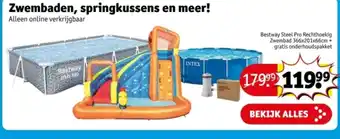 Ontdek ons assortiment van zwembaden, springkussens en meer! Alleen online verkrijgbaar, waaronder het Bestway Steel Pro Rechthoekig Zwembad 366x201x66cm + gratis onderhoudspakket. Kies uit topmerken zoals Bestway STEEL PRO en INTEX. Met ons ruime aanbod vind je gegarandeerd het perfecte zwembad of springkussen voor urenlang speelplezier in de zomer. Of je nu op zoek bent naar een groot familiezwembad of een compact kinderzwembad, wij hebben het allemaal. Bekijk alles wat we te bieden hebben en geniet van de beste prijzen en snelle levering. Maak van jouw tuin een waar waterparadijs met onze kwalitatieve producten. Bestel vandaag nog en geniet binnenkort van verfrissend waterplezier!