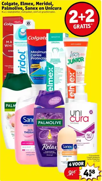 Colgate, Elmex, Meridol, Palmolive, Sanex en Unicura 2+2 gratis