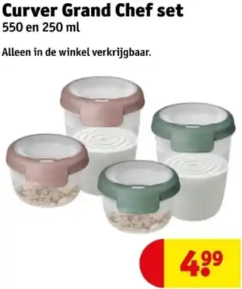 De prijs van de Curver Grand Chef set kan ook teruggevonden worden hierboven op de pagina, samen met de datum van wanneer de aanbieding beschikbaar is. Ook kun je de prijzen in de huidige Kruidvat folder of op de Kruidvat website controleren. De aanbiedingen verzekeren je van het kopen van de Kruidvat producten voor de laagste prijs.
