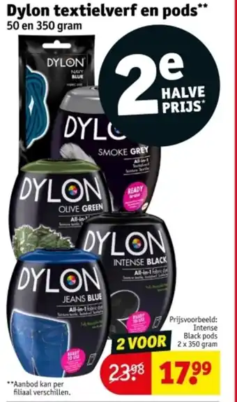 De Dylon textielverf en pods is momenteel met korting verkrijgbaar bij Kruidvat. Hier vind je alle details over prijs, geldigheidsduur en actievoorwaarden. Vergeet niet om ook andere aanbiedingen en deals voor Dylon textielverf en pods te bekijken zodat je zeker weet dat je de beste prijs betaalt. De kortingsactie loopt van 13-01-2026 tot 25-01-2026. Is de actie inmiddels verlopen? Geen zorgen, vergelijk dan soortgelijke aanbiedingen of volg de productcategorie voor toekomstige prijsverlagingen. Zo koop je altijd met voordeel.Veelgestelde vragen over Dylon textielverf en pods