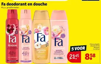 Kruidvat biedt naast de Fa deodorant en douche een ruime collectie producten aan. Houd de wekelijkse Kruidvat folder in de gaten om de beste aanbiedingen en acties te vinden. Naast Fa deodorant en douche, kunt u ook de volgende aanbiedingen vinden: Fa deodorant en douche, Fa deodorant en douche & Fa deodorant en douche.