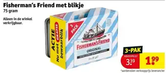 De prijs van de Fisherman's Friend met blikje kan ook teruggevonden worden hierboven op de pagina, samen met de datum van wanneer de aanbieding beschikbaar is. Ook kun je de prijzen in de huidige Kruidvat folder of op de Kruidvat website controleren. De aanbiedingen verzekeren je van het kopen van de Kruidvat producten voor de laagste prijs.