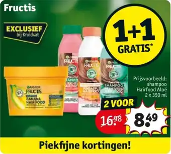 Kruidvat biedt naast de Fructis een ruime collectie producten aan. Houd de wekelijkse Kruidvat folder in de gaten om de beste aanbiedingen en acties te vinden. Naast Fructis, kunt u ook de volgende aanbiedingen vinden: Fructis haarverzorging, Garnier Fructis FRUCTIS METHODE Methode #2 & Garnier Fructis.