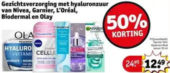 Gezichtsverzorging met hyaluronzuur van Nivea, Garnier, L'Oréal, Biodermal en Olay aanbieding en online acties bij Kruidvat