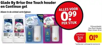 De prijs van de Glade By Brise One Touch houder en Continue gel kan ook teruggevonden worden hierboven op de pagina, samen met de datum van wanneer de aanbieding beschikbaar is. Ook kun je de prijzen in de huidige Kruidvat folder of op de Kruidvat website controleren. De aanbiedingen verzekeren je van het kopen van de Kruidvat producten voor de laagste prijs.