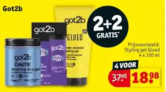 De aanbieding is verkrijgbaar in verschillende winkels, bekijk alle producten om de goedkoopste Got2b te krijgen. Als je graag wilt kijken of het artikel met meer korting te koop is in een andere winkel, bekijk de categorie 'Drogist en Parfumerie'. Wellicht vind je deze aanbiedingen ook interessant: Got2b, Syoss en Gliss, Got2b Glued Styling Haargel & Got2b Glued 4 brows & edges.