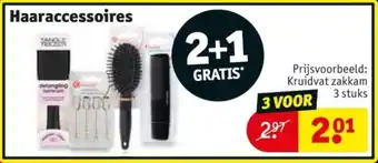 Profiteer nu van de geweldige aanbieding op haaraccessoires bij Kruidvat! Koop 2 haaraccessoires en ontvang de derde helemaal GRATIS*. Met een ruime keuze aan haaraccessoires, zoals zakkammen, haarelastieken, speldjes en nog veel meer, vind je altijd iets wat bij jouw stijl past. Of je nu op zoek bent naar praktische haaraccessoires voor dagelijks gebruik of naar elegante accessoires voor een speciale gelegenheid, bij Kruidvat slaag je altijd. Maak je haarlook compleet met de trendy haaraccessoires van Kruidvat en profiteer van de 2+1 GRATIS* actie. Haast je naar de dichtstbijzijnde Kruidvat winkel en sla je slag! *Vraag naar de voorwaarden in de winkel.